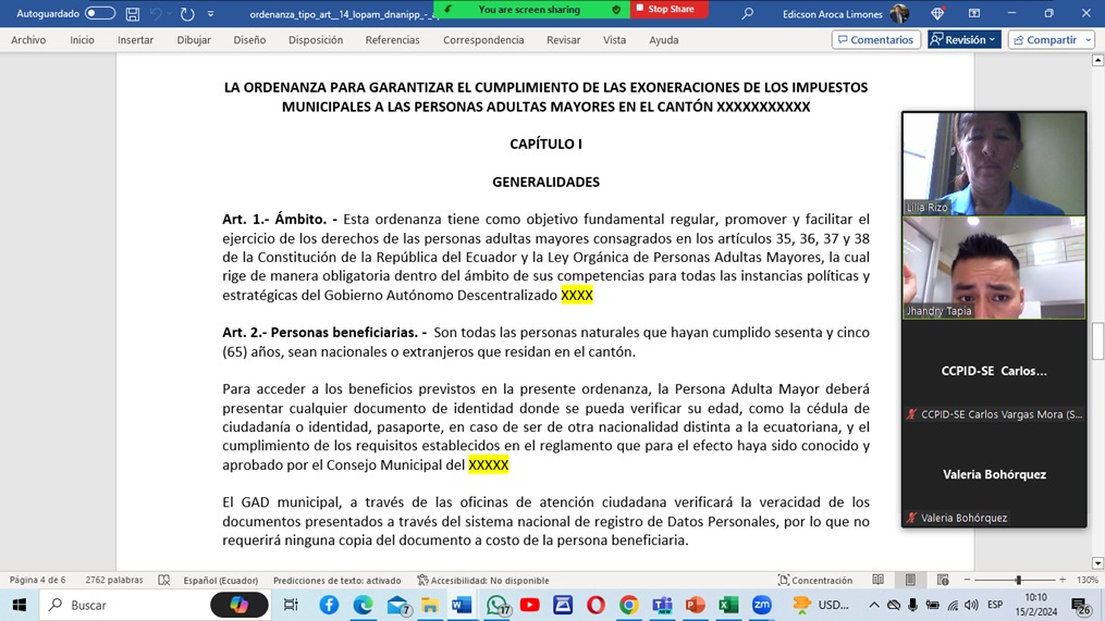 El CNII en territorio y la Defensoría del Pueblo con sede en la provincia de Santa Elena, revisamos los avances entre ambas instituciones, relacionados con el cumplimiento del artículo 14 de la Ley Orgánica de las Personas Adultas Mayores, por parte de los Gobiernos Autónomos Descentralizados municipales en Santa Elena.